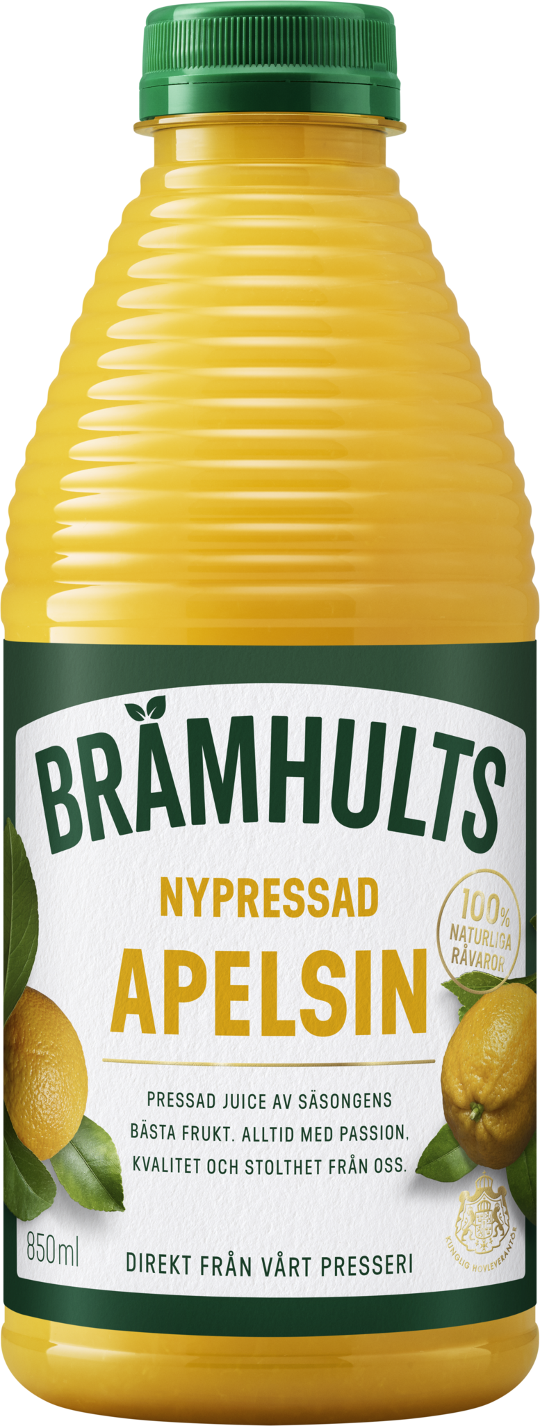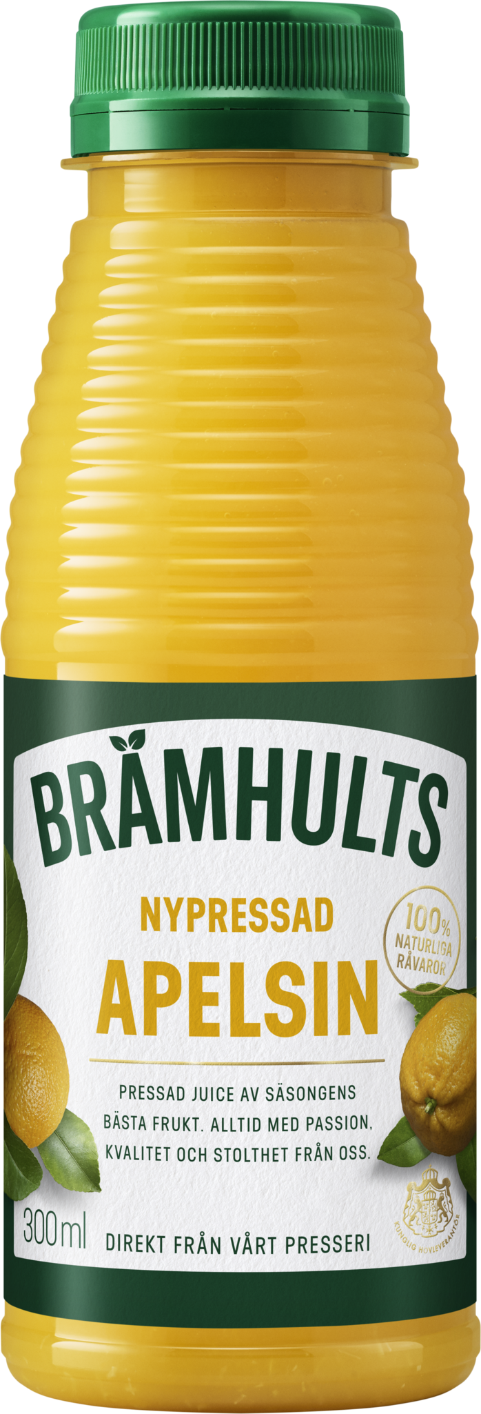 I Brämhults ferskpresset appelsinjuice bruker vi vanligvis tre appelsinsorter, avhengig av sesongen: Valencia late, Salustiana og Baladi. Alle tre er typiske juiceappelsiner, med mye saft og høyt innhold av C-vitaminer. Dette gjør juicen herlig frisk og syrlig – perfekt til frokosten som en energisk start på dagen. Appelsinene kjøper vi først og fremst fra solrike Spania, men også fra Sør-Amerika, avhengig av når og hvor vi mener de er på sitt aller beste. Vår nypressede appelsinjuice inneholder ikke tilsatt sukker eller kunstige tilsetningsstoffer, bare naturlig fruktsukker. Finnes i størrelsene: 0,30L, 0,85L, 1,3L og 5L.